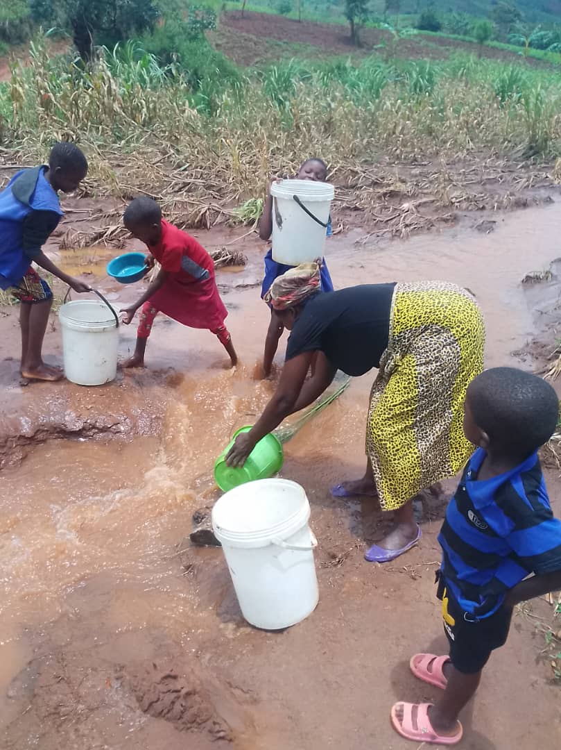 Current Water Situation: The 350 residents of Bundi Village have no access to safe drinking water. The only water source is a muddy stream shared with livestock and wild animals, where families and children must stand in the flowing brown water to scoop it into buckets and containers. The water is visibly contaminated with mud and sediment, and this area is prone to cholera and other waterborne diseases, presenting severe health risks to the entire community, including learners and teachers at the nearby primary school.